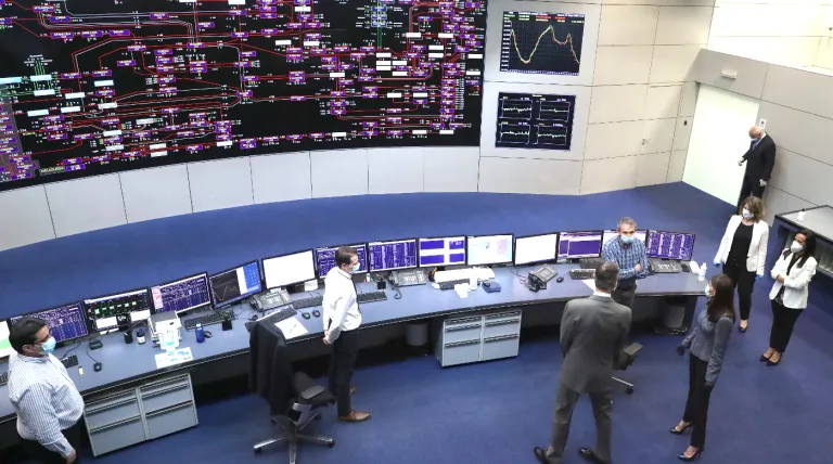 Sus Majestades los Reyes han visitado esta mañana el Centro de Control de Red Eléctrica de España (CECOEL) para conocer de primera mano el trabajo que la compañía, transportista y operador único del sistema eléctrico en nuestro país, realiza para garantizar en todo momento el suministro eléctrico a todos los hogares y servicios esenciales de España. Considerado como el cerebro del sistema eléctrico, el CECOEL es el centro desde el que se opera y supervisa en tiempo real todos los días del año el funcionamiento de las instalaciones de la red de transporte que transportan la electricidad desde las centrales de generación hasta los puntos de consumo.
