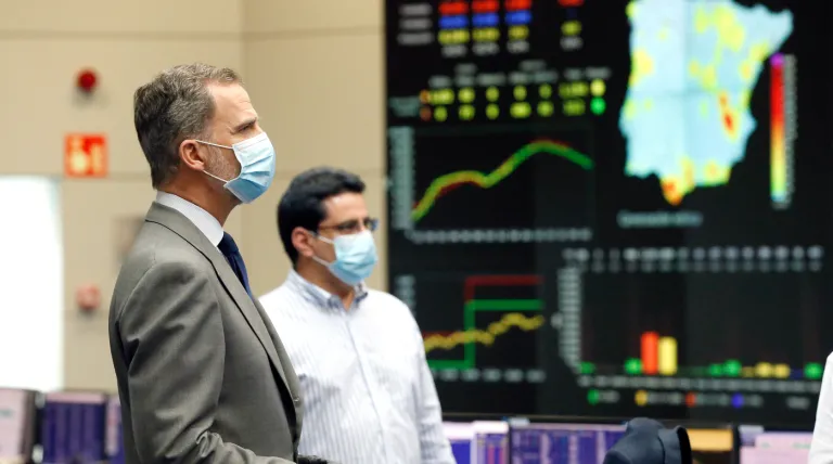 Acompañados por la presidenta y el consejero delegado de la compañía, Beatriz Corredor y Roberto García Merino, por la vicepresidenta cuarta y ministra de Transición Ecológica y el Reto Demográfico, Teresa Ribera; la consejera de Presidencia de la Comunidad de Madrid, María Eugenia Carballedo; el alcalde de Alcobendas, Rafael Sánchez Acera, y el director general de Operación de Red Eléctrica, Miguel Duvison, los Reyes han saludado a los operadores del centro y han podido conocer, entre otras cuestiones, los efectos de la pandemia en la demanda eléctrica y en el mix energético. Así, mientras la demanda ha llegado a caer hasta un 20% durante el confinamiento, el mix energético ha destacado por un incremento notable de la participación de las energías renovables, alcanzado un 49,4% y un 47,9% en los meses de marzo y abril, respectivamente. En este contexto, la solar fotovoltaica ha gozado del mayor protagonismo, logrando la participación mensual más alta en su historia.